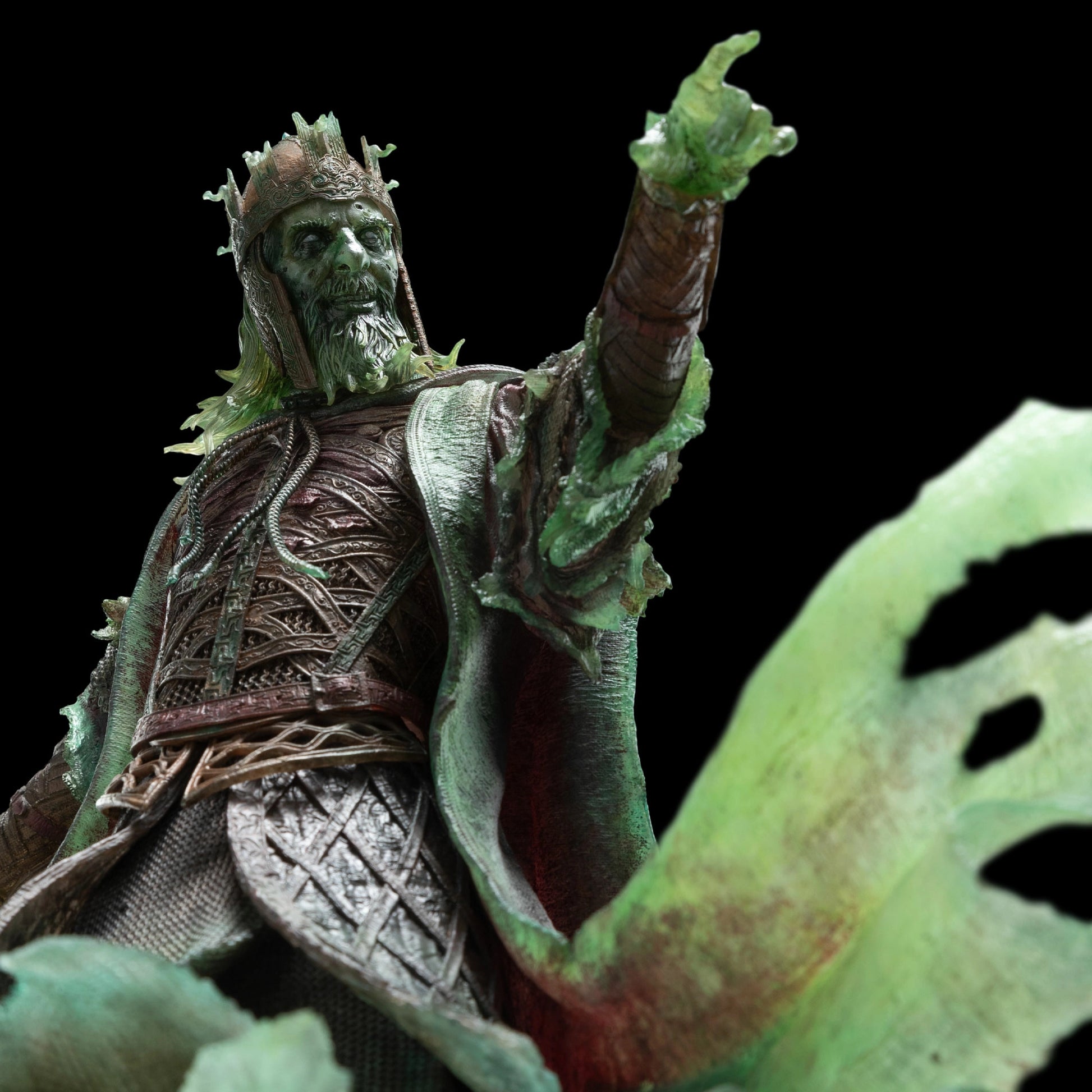 In life, he was a king; in death, he is a legend. Bound by an unbroken oath, he stands as a testament to honour and the dire consequences of broken promises. Let his presence in your collection serve as a reminder of the eternal struggle between duty and redemption. With an aura of unsettling majesty, this statue captures the very essence of the undead sovereign, making it a must-have for any dedicated fan of Middle-earth's timeless saga.